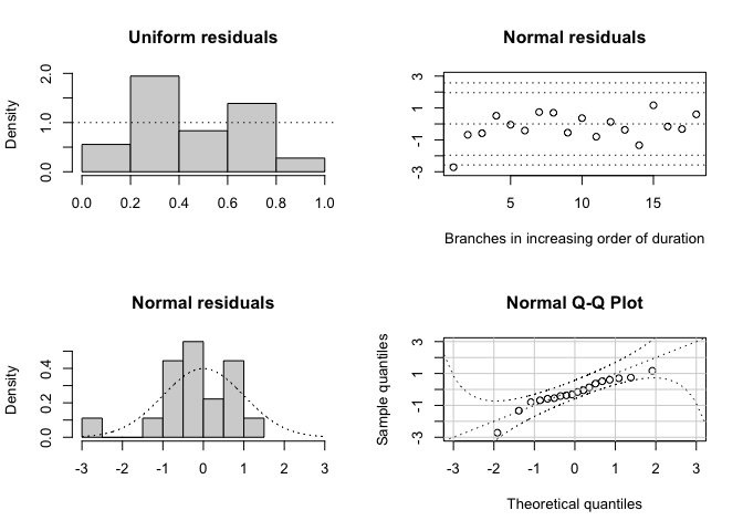 For more detailed examples of how to use DiagnoDating, see the vignettes here. See also the help included in the package using the R command help(package='DiagnoDating').